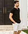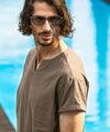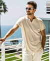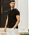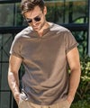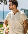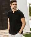 リラックス感と大人の上品さを兼ね備えたキーネックデザインの半袖カットソー。
