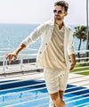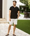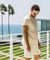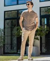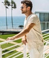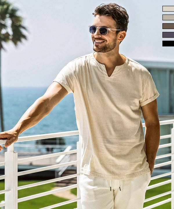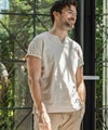 麻混素材ならではのドライな質感により、汗ばむ季節でも肌離れが良く、ノンストレスで軽快な着心地を実現しています。