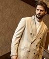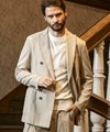 清涼感のある麻混素材を採用したクラシカルなダブルブレストジャケット。