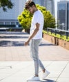 1PIU1UGUALE3 RELAX(ウノピゥウノウグァーレトレ リラックス)テープロゴロングパンツ