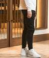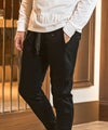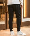 ウエストゴムに加え、サイドから腰回りにはリブ切替を施すことで可動域を確保しながら立体的なシルエットを形成。
