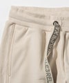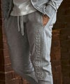 左サイドに大胆に配したエンボスロゴが目を惹くスウェットパンツ。