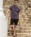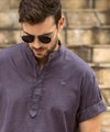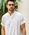 1PIU1UGUALE3 RELAX(ウノピゥウノウグァーレトレ リラックス)リネンブレンドヘンリーネック半袖シャツ