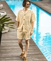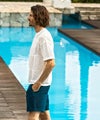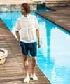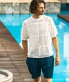 立体的な編地が肌との接地面を減らし、風を通すシアーな質感と相まって、真夏でも驚くほどドライで軽快な着用感を実現しました。