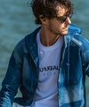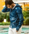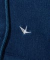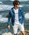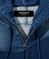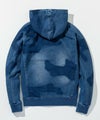 ブランドアイコンとなるカモフラージュ柄にインディゴ染めのニュアンスを掛け合わせたジップアップフーディー。