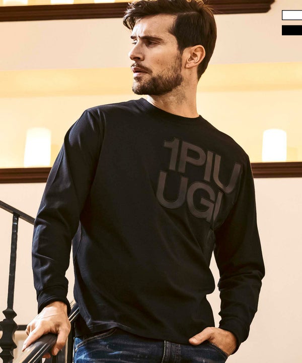 1PIU1UGUALE3 RELAX(ウノピゥウノウグァーレトレ リラックス)フェイクレザーロゴロングTシャツ
