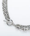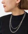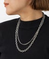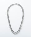 異なるチェーンを組み合わせた2連デザインが、さりげなく存在感を放つシルバーネックレス。