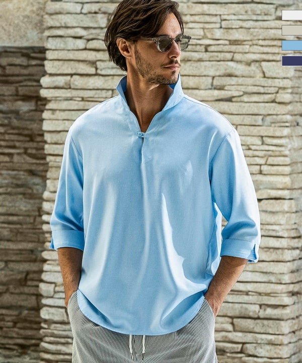 49%OFF AKM Contemporary(エイケイエムコンテンポラリー)スキッパープルオーバーシャツ(防シワ / イージーケア) 4月中旬お届け