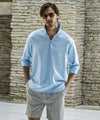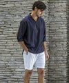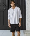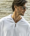 スキッパーにループ留めボタンを施し、程よい抜け感のある大人のリゾートスタイルを演出。