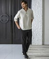 襟を立てて着れば、大人の余裕と色気が漂う着こなしに。