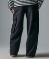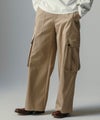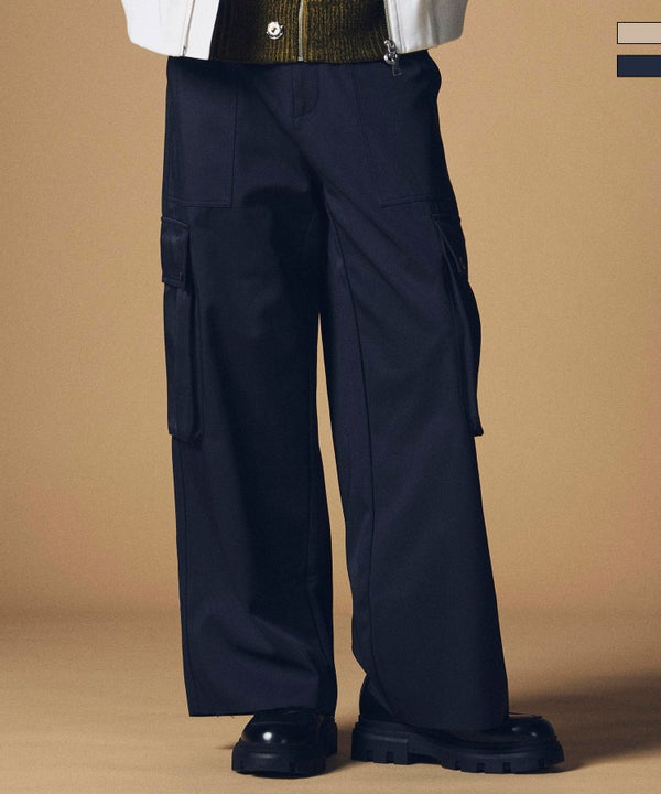 滑らなドレープ素材を使用した、ハイウエストデザインのワイドカーゴパンツ。