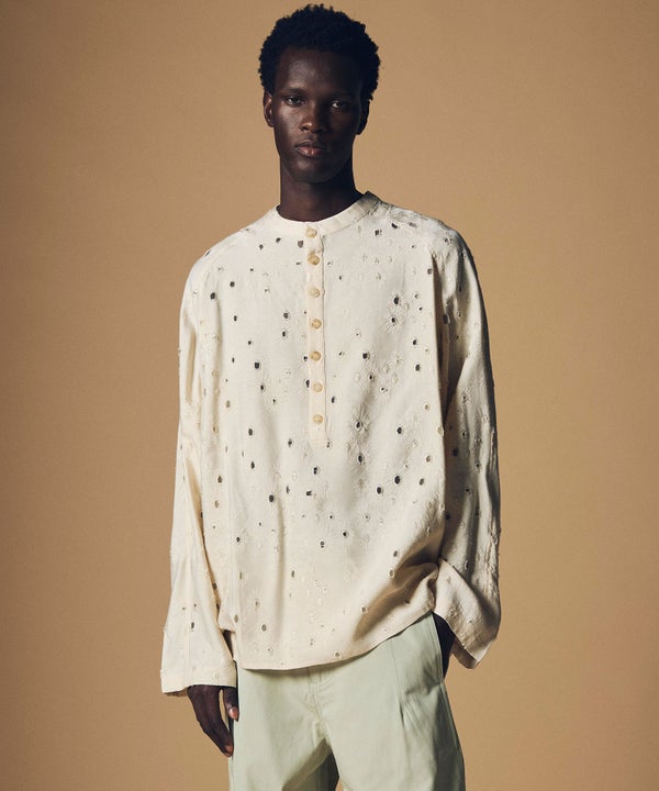 カットワークが特徴的な、アイレットレースのプルオーバーシャツ。