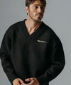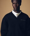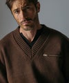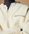 ジップポケット付きのVネック長袖ニットプルオーバー。