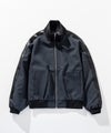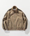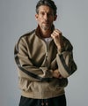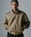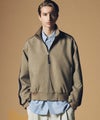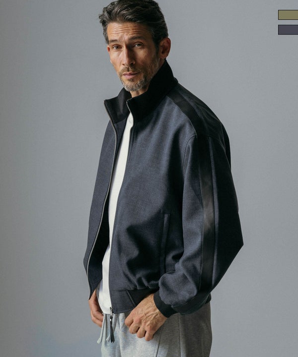 スタンドカラーと肩のフェイクレザー切替が印象的なブルゾンジャケット。