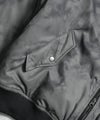 一見するとシンプルなMA-1ジャケットですが、光の当たり方や見る角度によって表情を変える、アブストラクト柄(抽象柄)を全面にプリントさ。