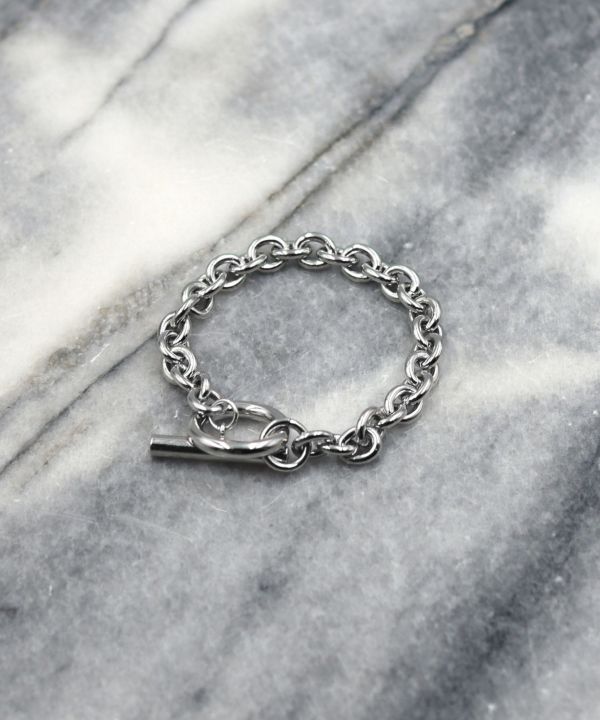 ミニマルなデザインながらも、旬な要素もあるチェーンブレスレット。