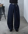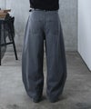 立体的な切り替えと裾に向かって丸みを帯びたバレルレッグシルエットが特徴。