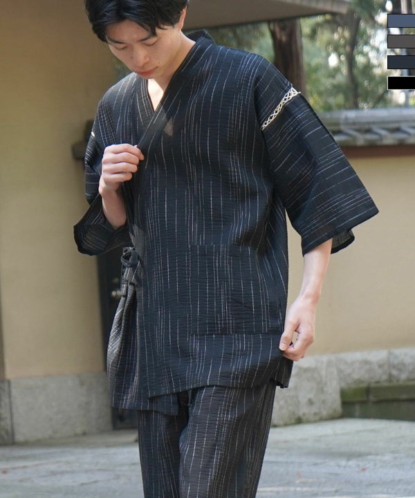 Confirm(コンファーム)縞しじら織り甚平 上下セット