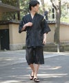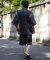 腰元の結び目がいいアクセントに。シンプルかつ甚平の粋な雰囲気を引き立てるデザイン。