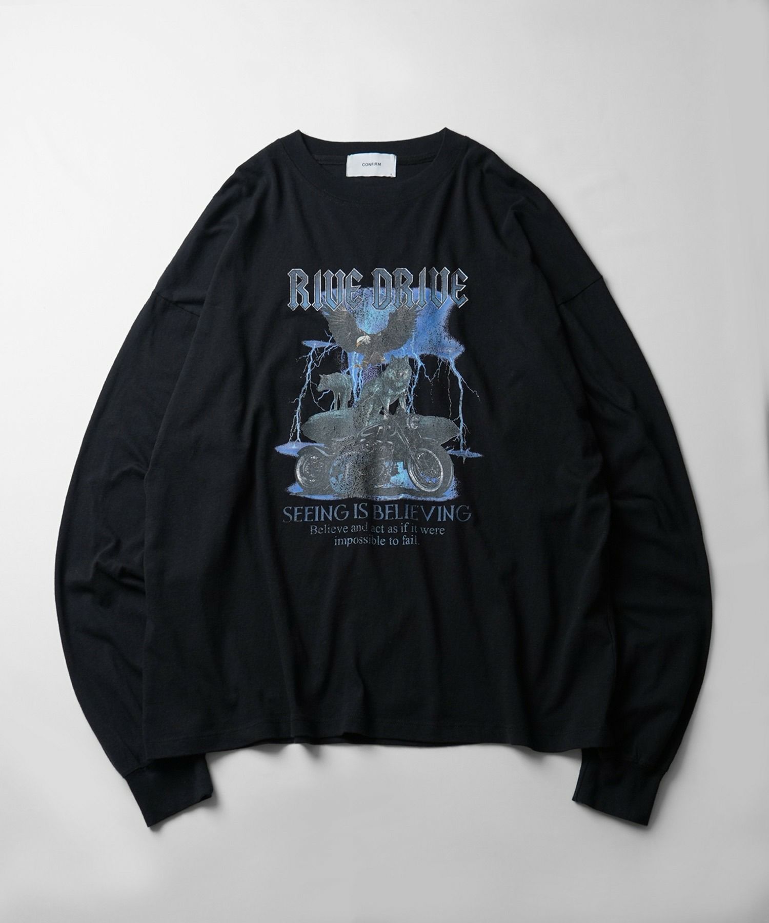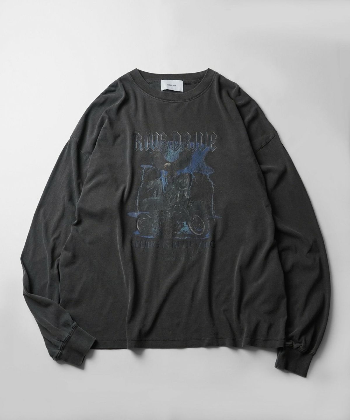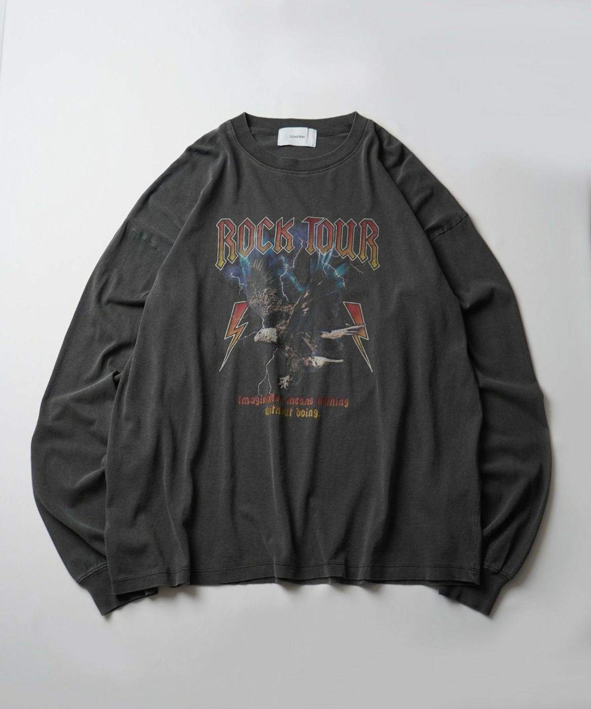 他の画像を見る SALE 17%OFF Confirm(コンファーム)ヴィンテージライク レトロプリント ピグメント加工 ビッグシルエット バンドロンT カットソー ¥ 5,390 ¥ 4,490 税込 お気に入りに登録する