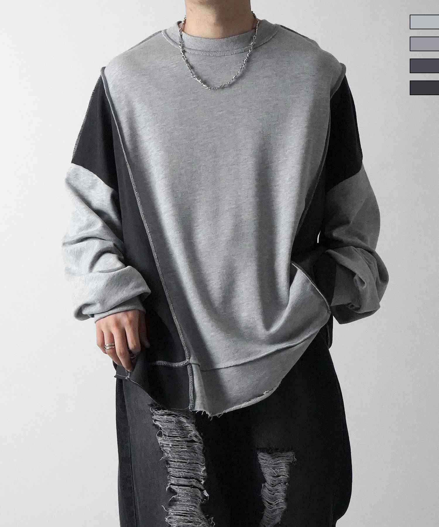 Confirm(コンファーム)ヴィンテージライク リメイク風 切り替え配色 裏毛トレーナー プルオーバースウェット