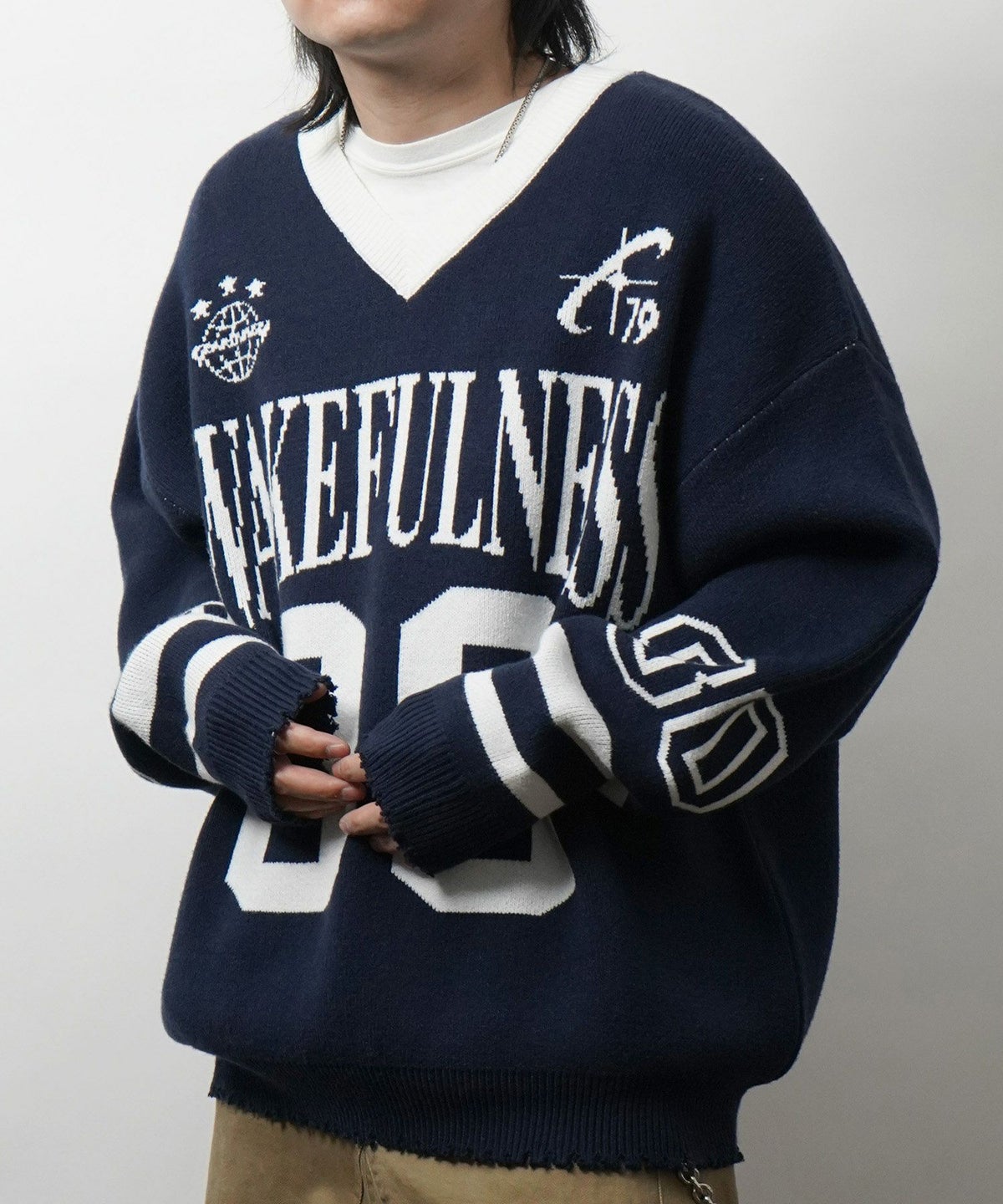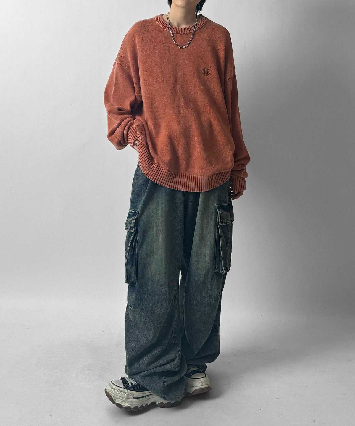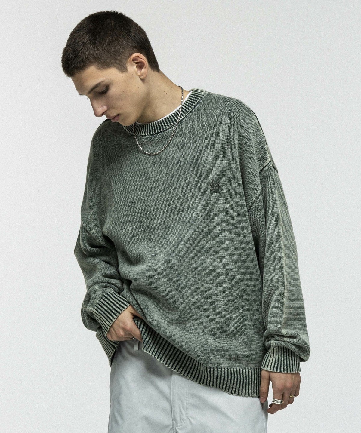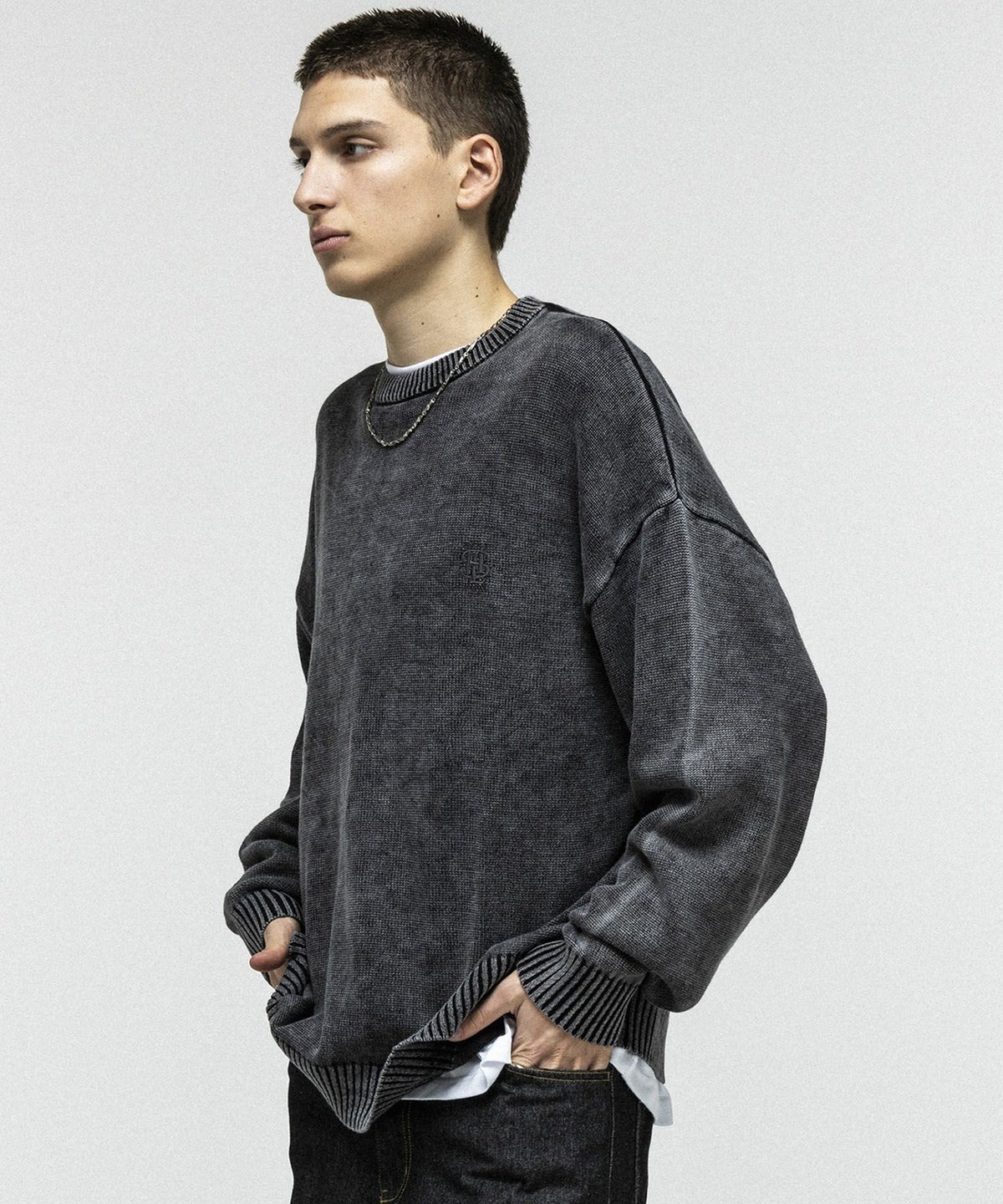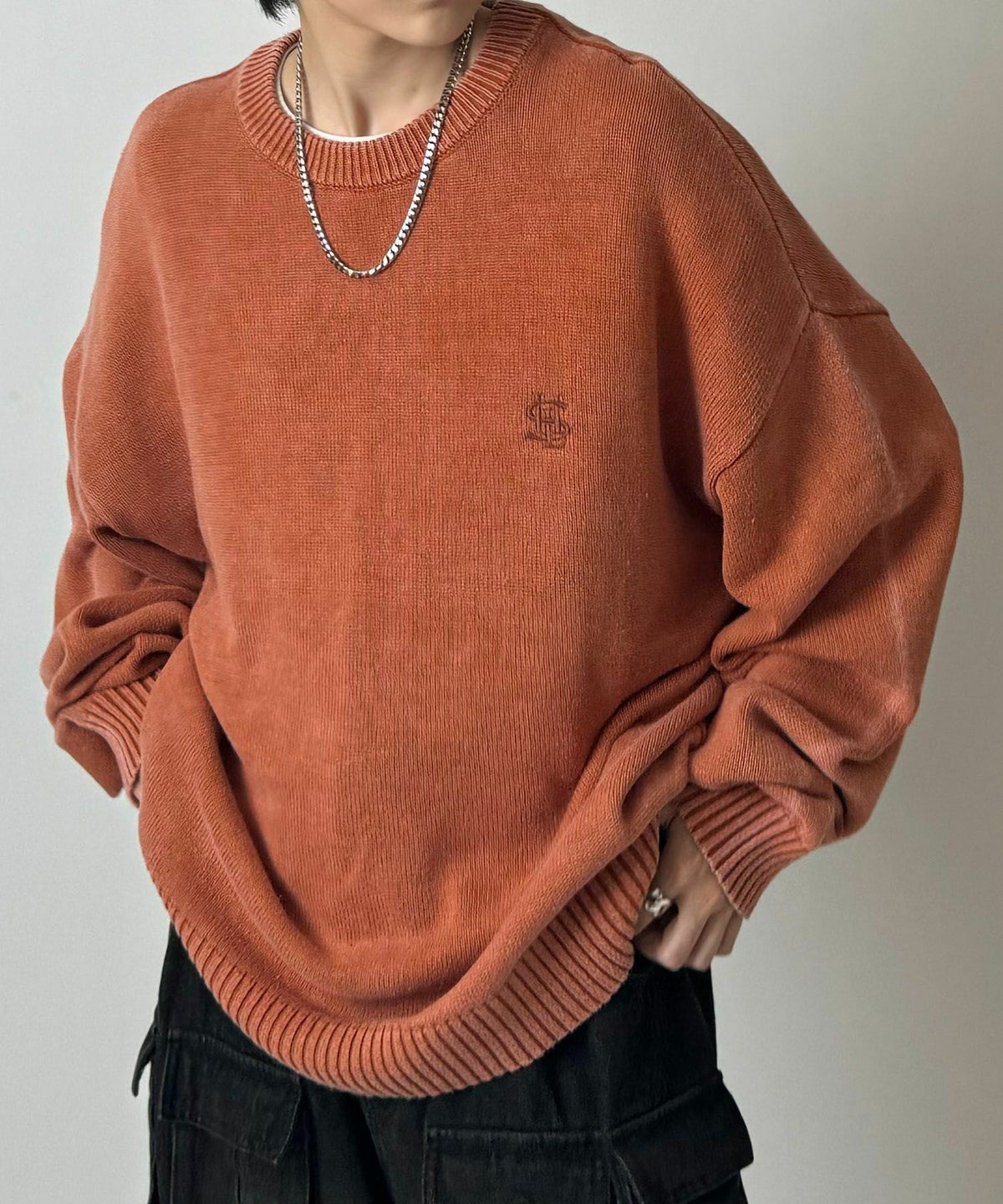 他の画像を見る SALE 32%OFF ILL’S(イルズ)ヴィンテージライク ピグメント加工 ビッグシルエット ワンポイント刺繍 レトロプルオーバーニット ¥ 6,600 ¥ 4,490 税込 お気に入りに登録する