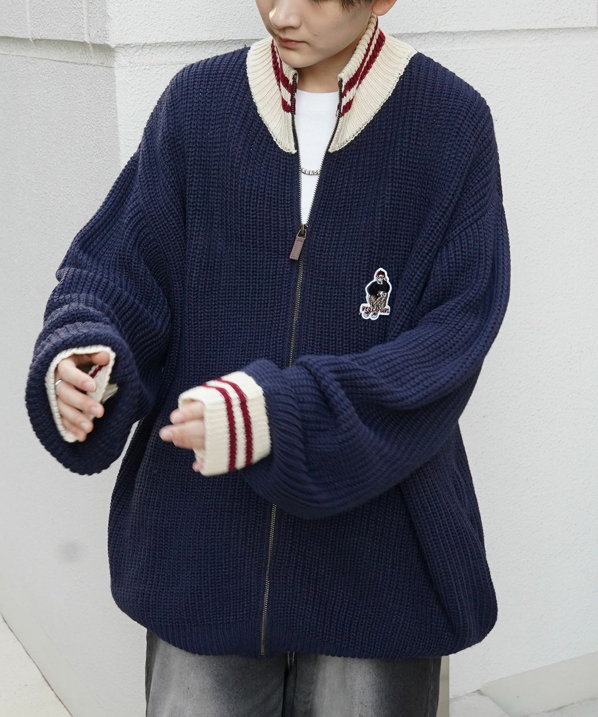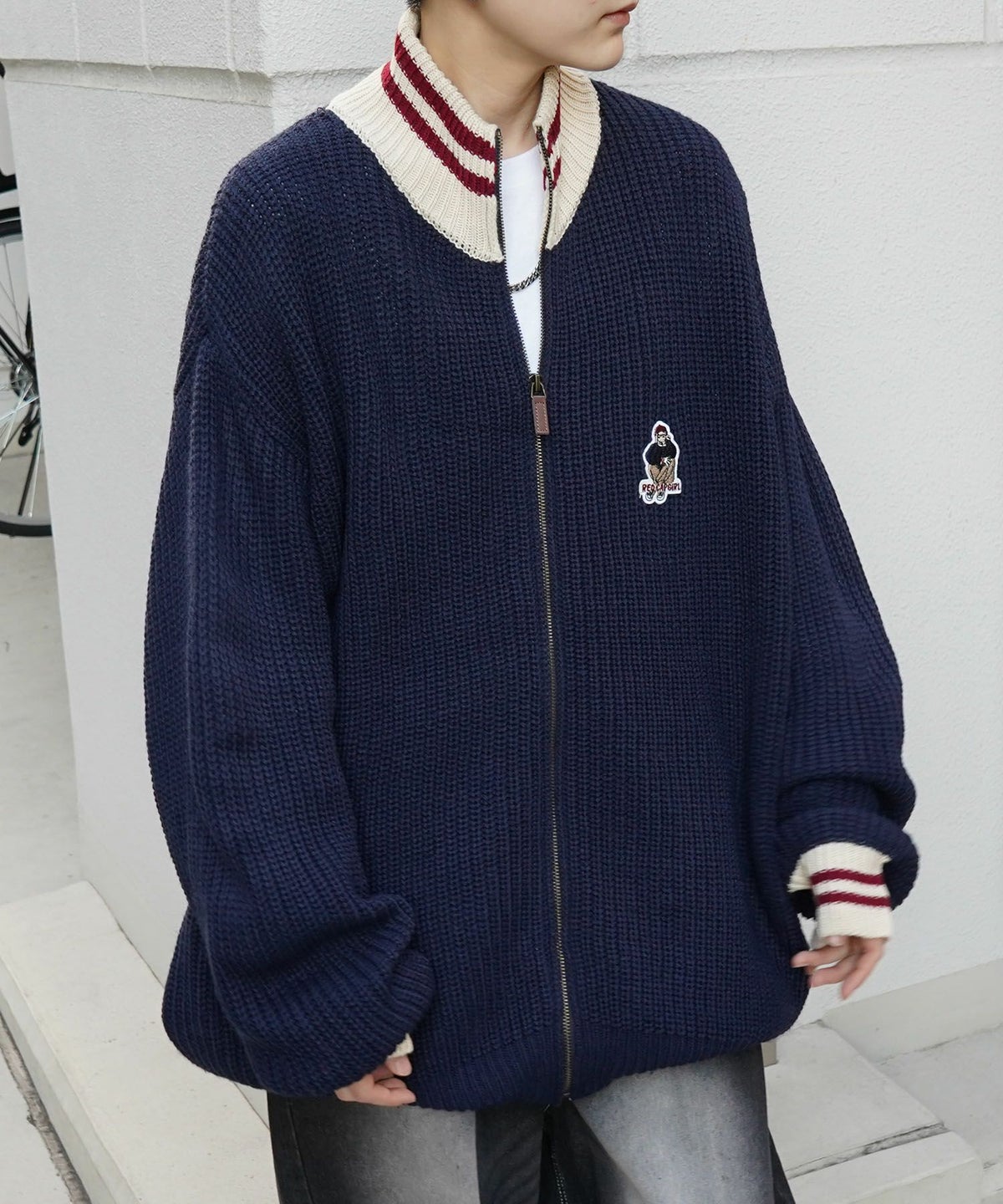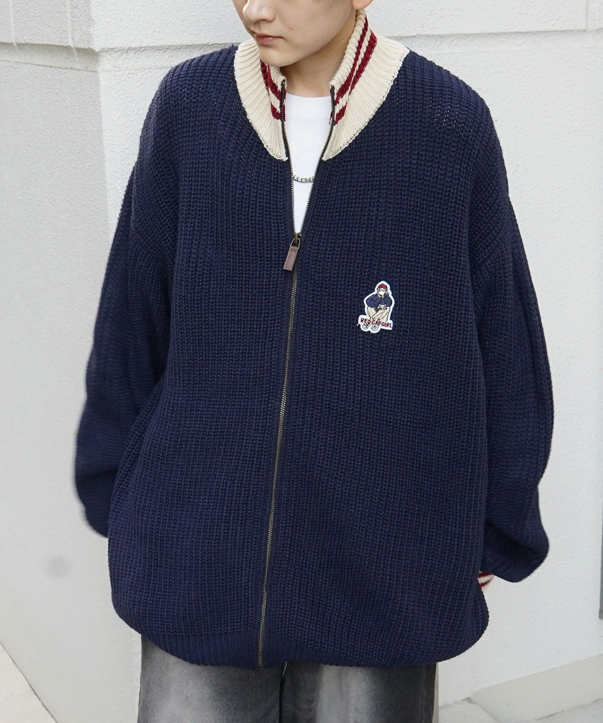 他の画像を見る SALE 9%OFF ILL'S(イルズ)【RED CAP GIRL】リブ編み ワンポイント胸ワッペン刺繍 ビッグシルエット フルジップドライバーズニット ¥ 8,800 ¥ 7,990 税込 お気に入りに登録する