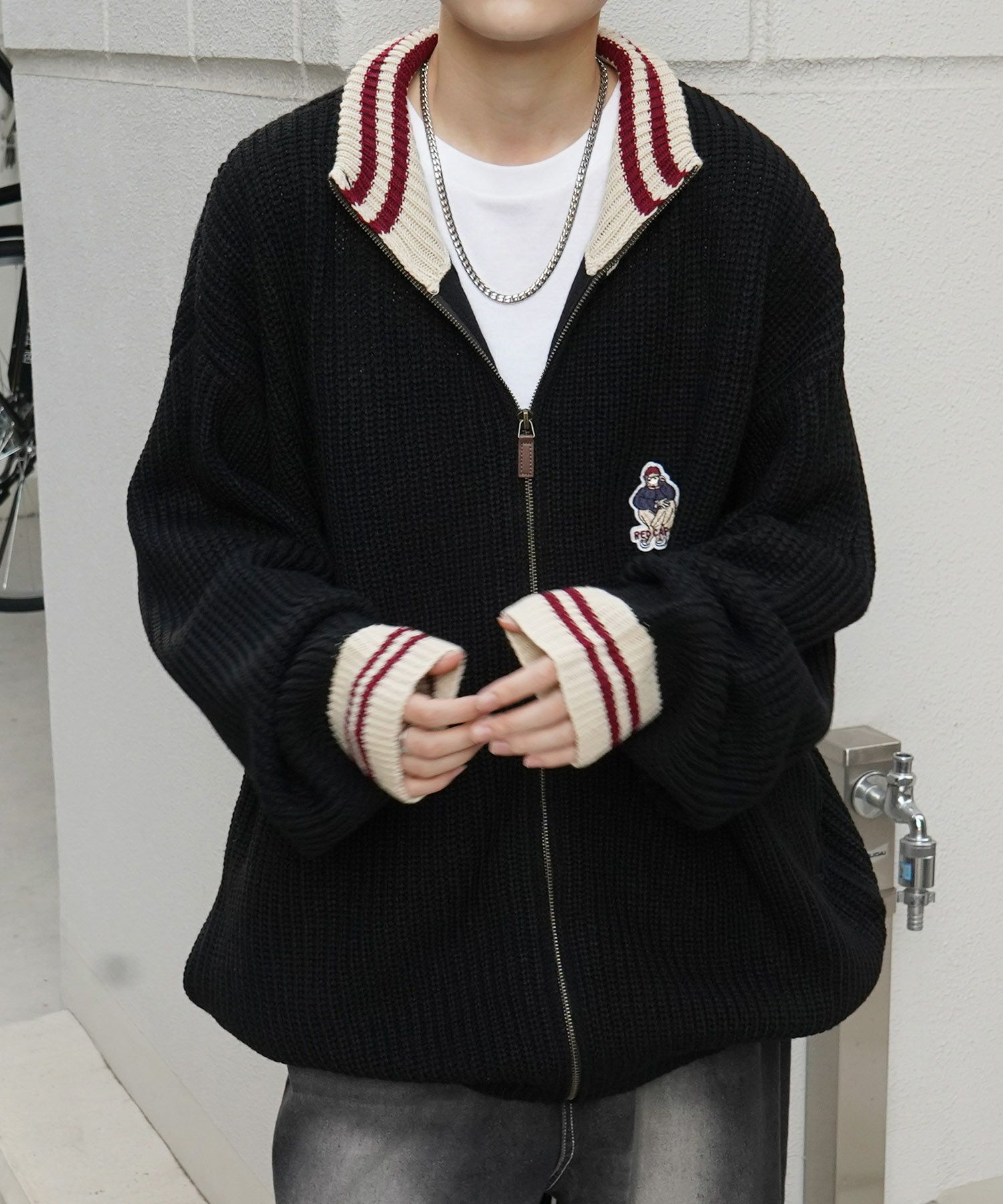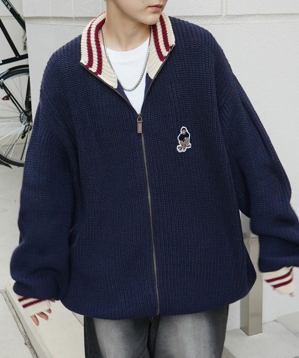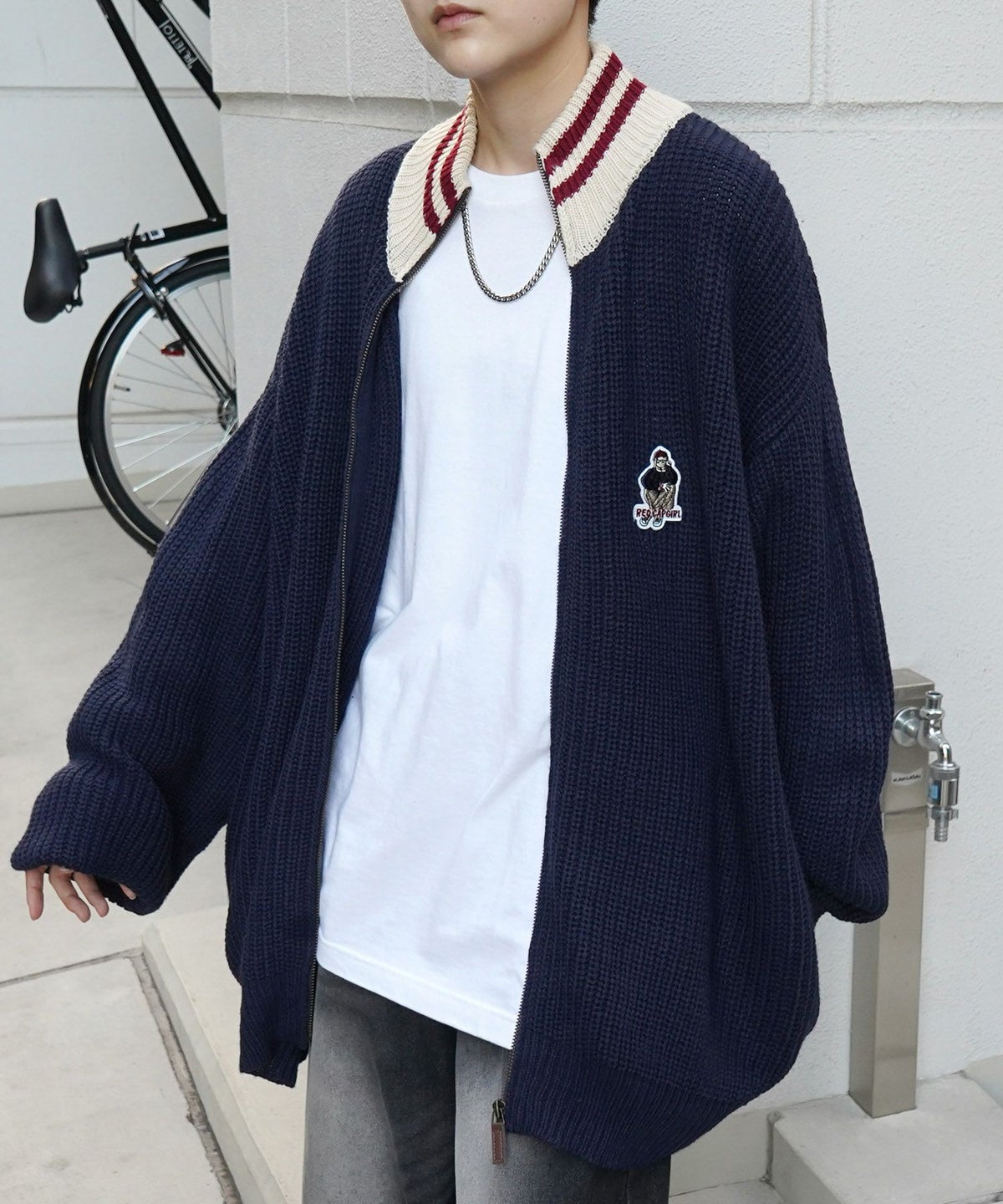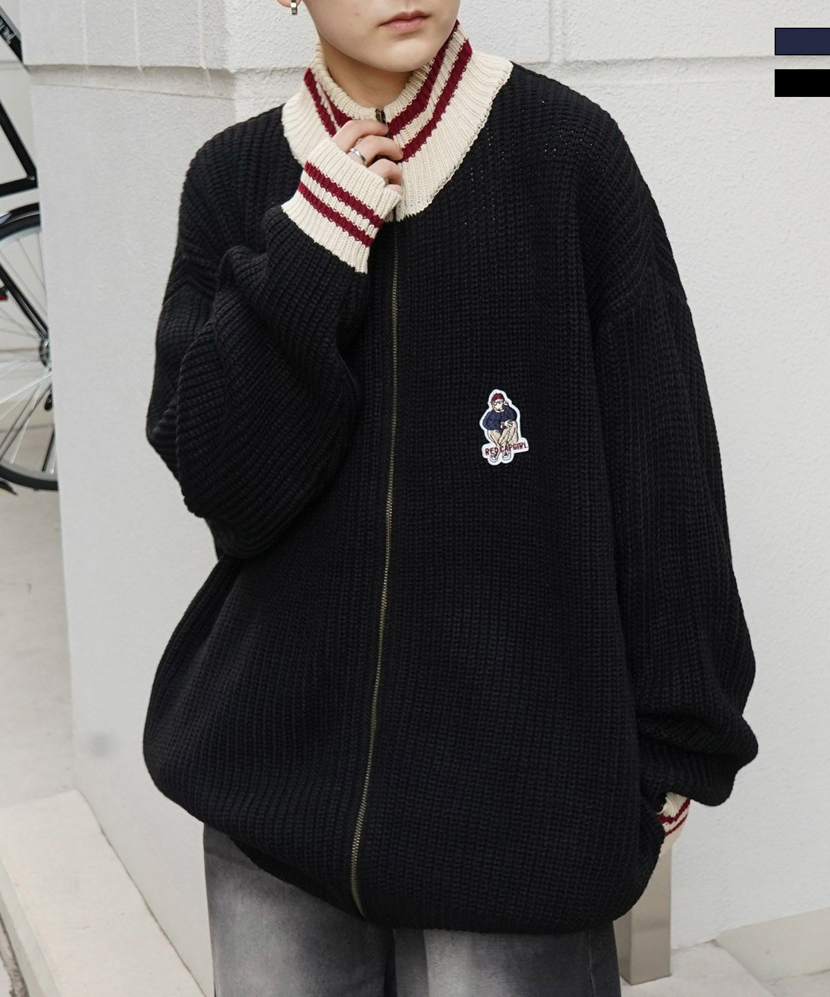 他の画像を見る SALE 9%OFF ILL'S(イルズ)【RED CAP GIRL】リブ編み ワンポイント胸ワッペン刺繍 ビッグシルエット フルジップドライバーズニット ¥ 8,800 ¥ 7,990 税込 お気に入りに登録する