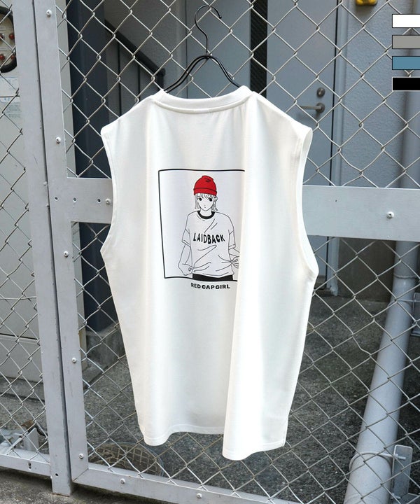 ILL'S(イルズ)【RED CAP GIRL】 とろみドレープ バックプリント ノースリーブ ポンチカットソー