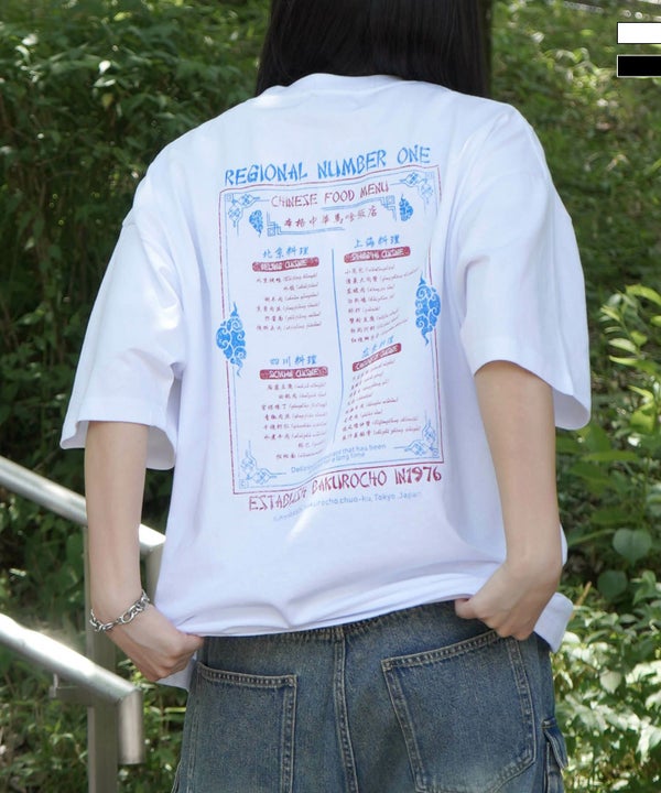 ILL’S(イルズ)ビッグシルエット "馬喰飯店" 中華メニュー バックプリント半袖Tシャツ