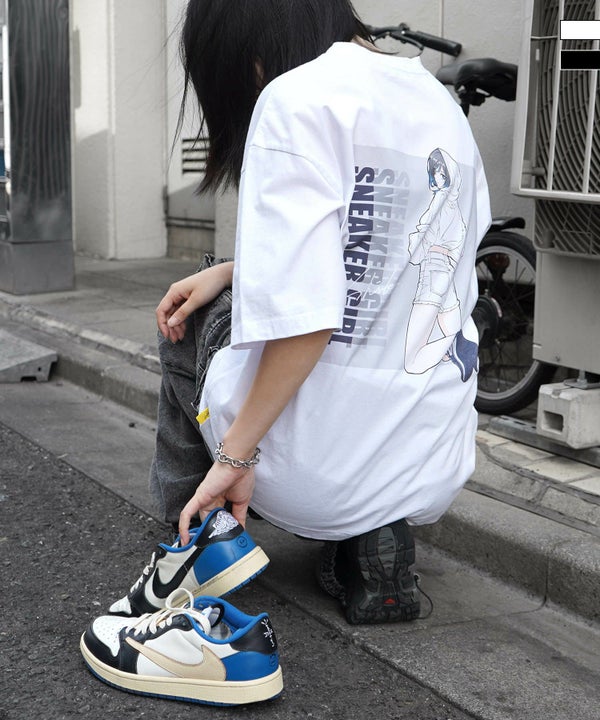 ILL’S(イルズ)【SNKR GIRL × #鹿 (Shika) コラボ】スニーカーガール ビッグシルエット スクエア バックイラスト プリントTシャツ