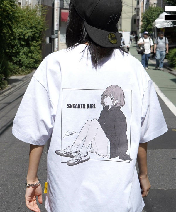 ILL’S(イルズ)【SNKR GIRL × #鹿 (Shika) コラボ】スニーカーガール ビッグシルエット バックイラスト プリントTシャツ