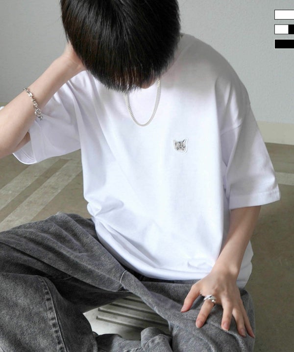 ILL’S(イルズ) ビッグシルエット イヌ / ネコ 動物ワンポイント刺繍Tシャツ