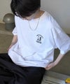 人と座っているイヌのイラストが刺繍されたカットソー。