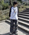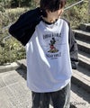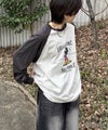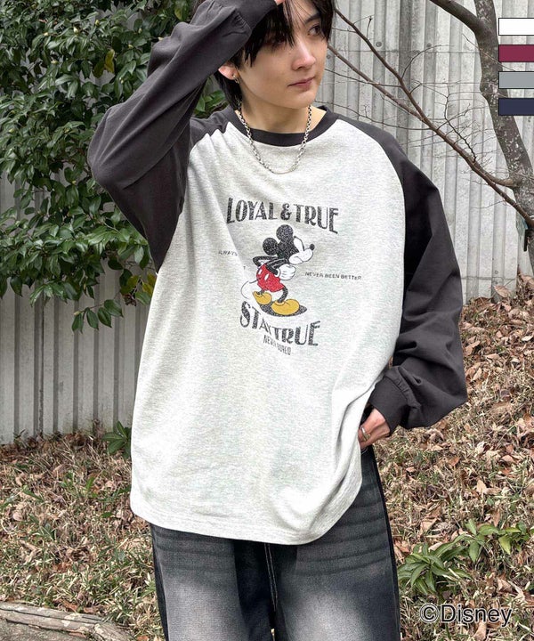 ILL'S(イルズ)Disney Mickey / ミッキー ヴィンテージライク レトログラフィック 古着風クラックプリント ビッグシルエット ラグランロンT