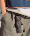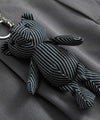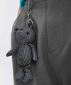 ベルトループにぶら下がるクマのキーホルダーがシンプルなデザインにアクセントを添えます。