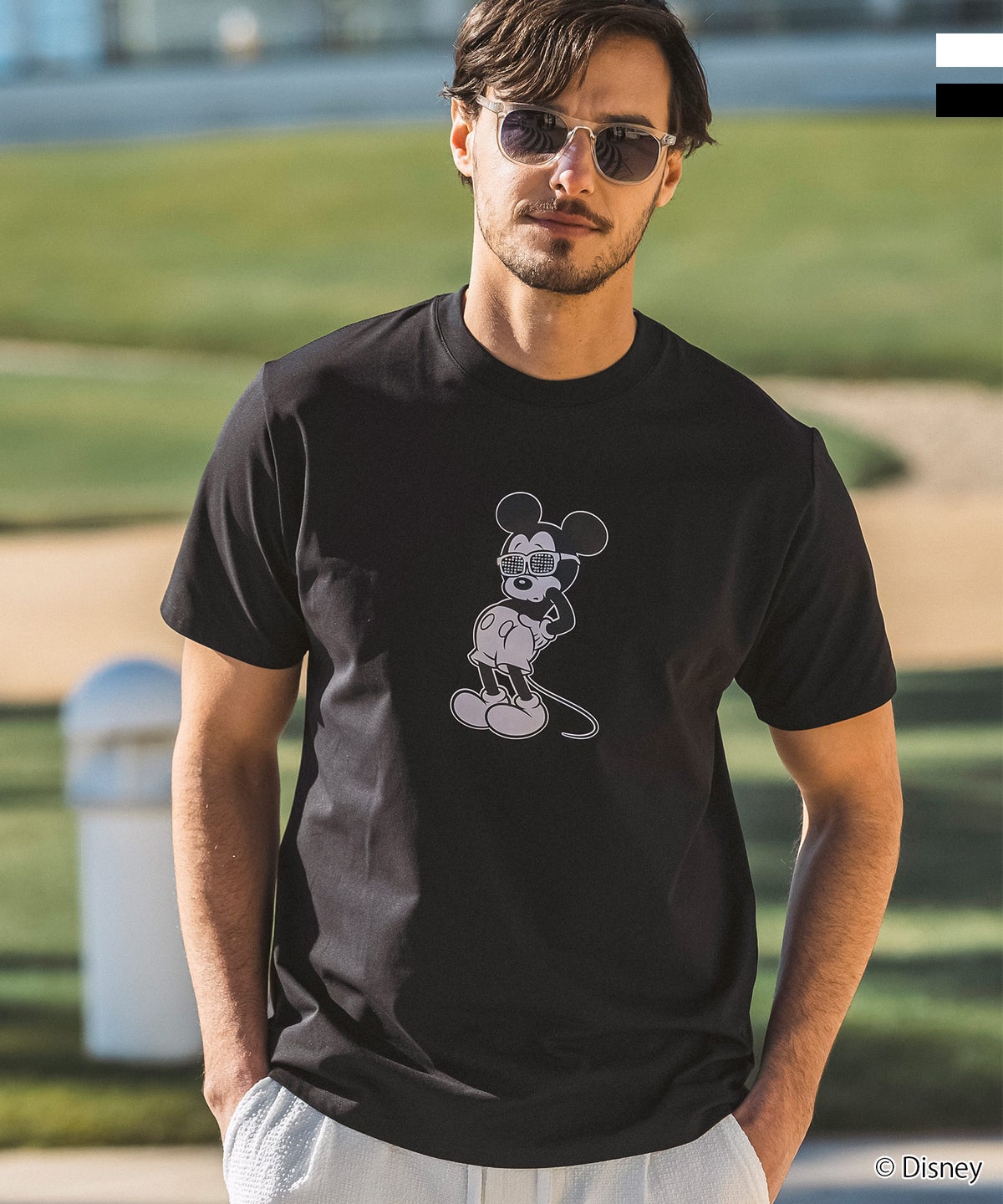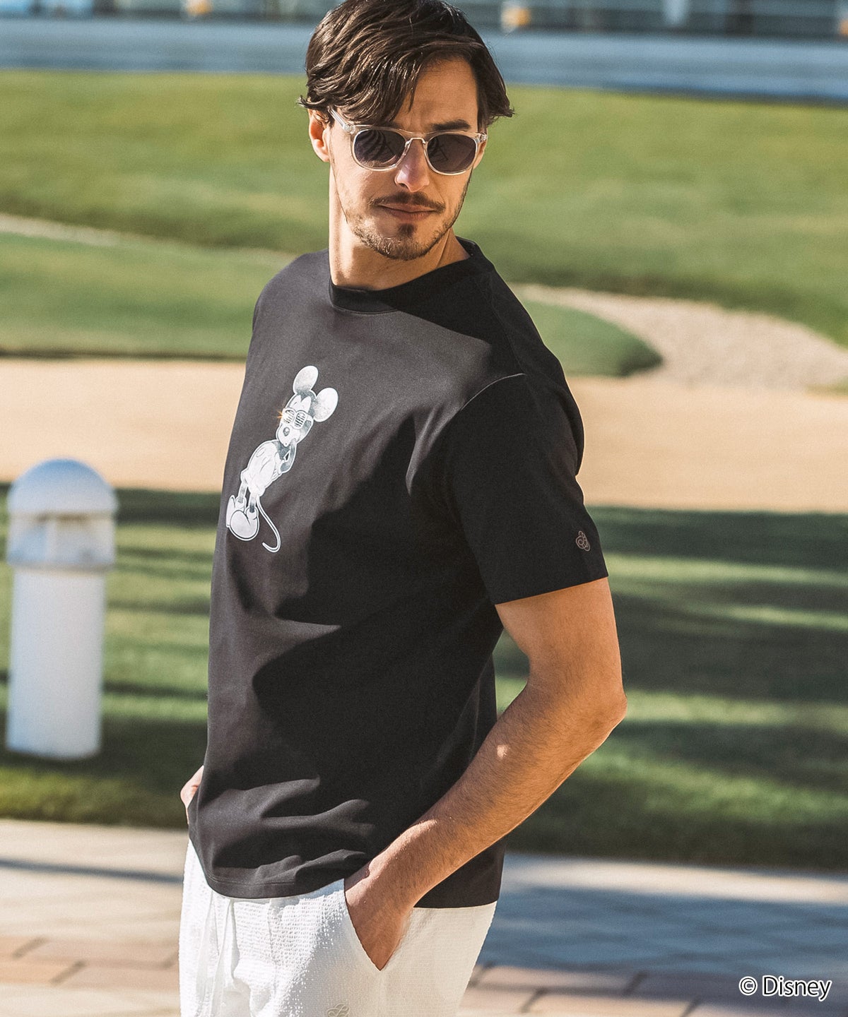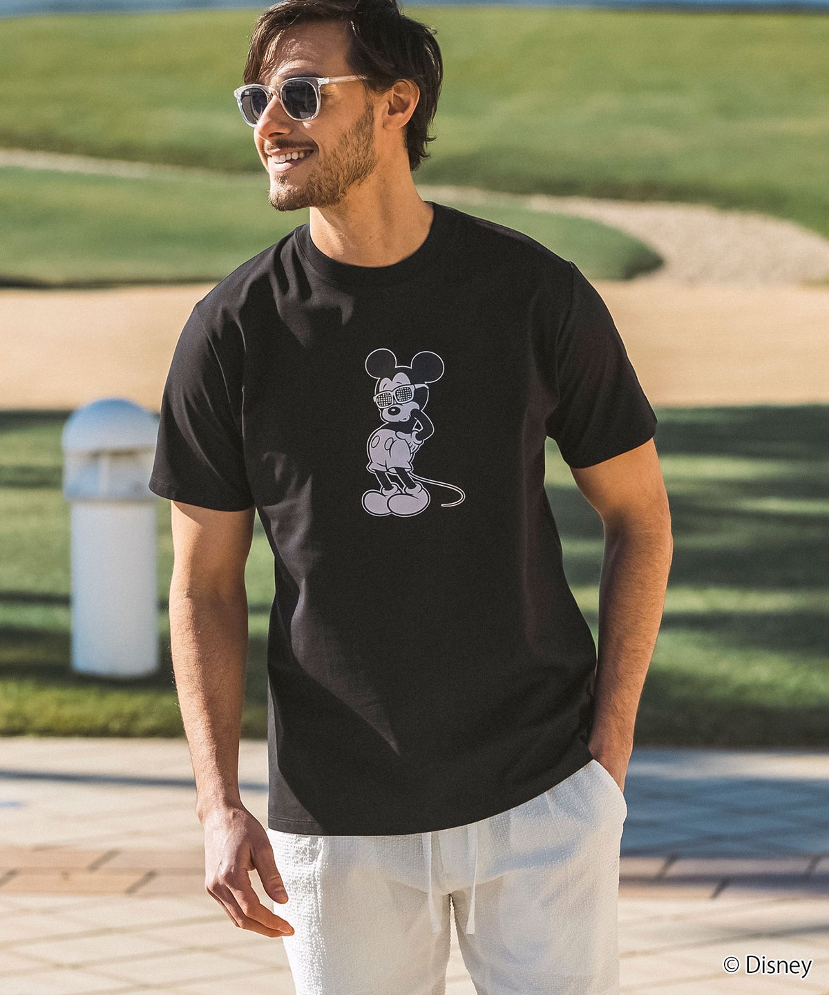 LUXEAKMPLUS(リュクスエイケイエムプラス)ゴルフ【ミッキーマウス】ラインストーンサングラス半袖Tシャツ