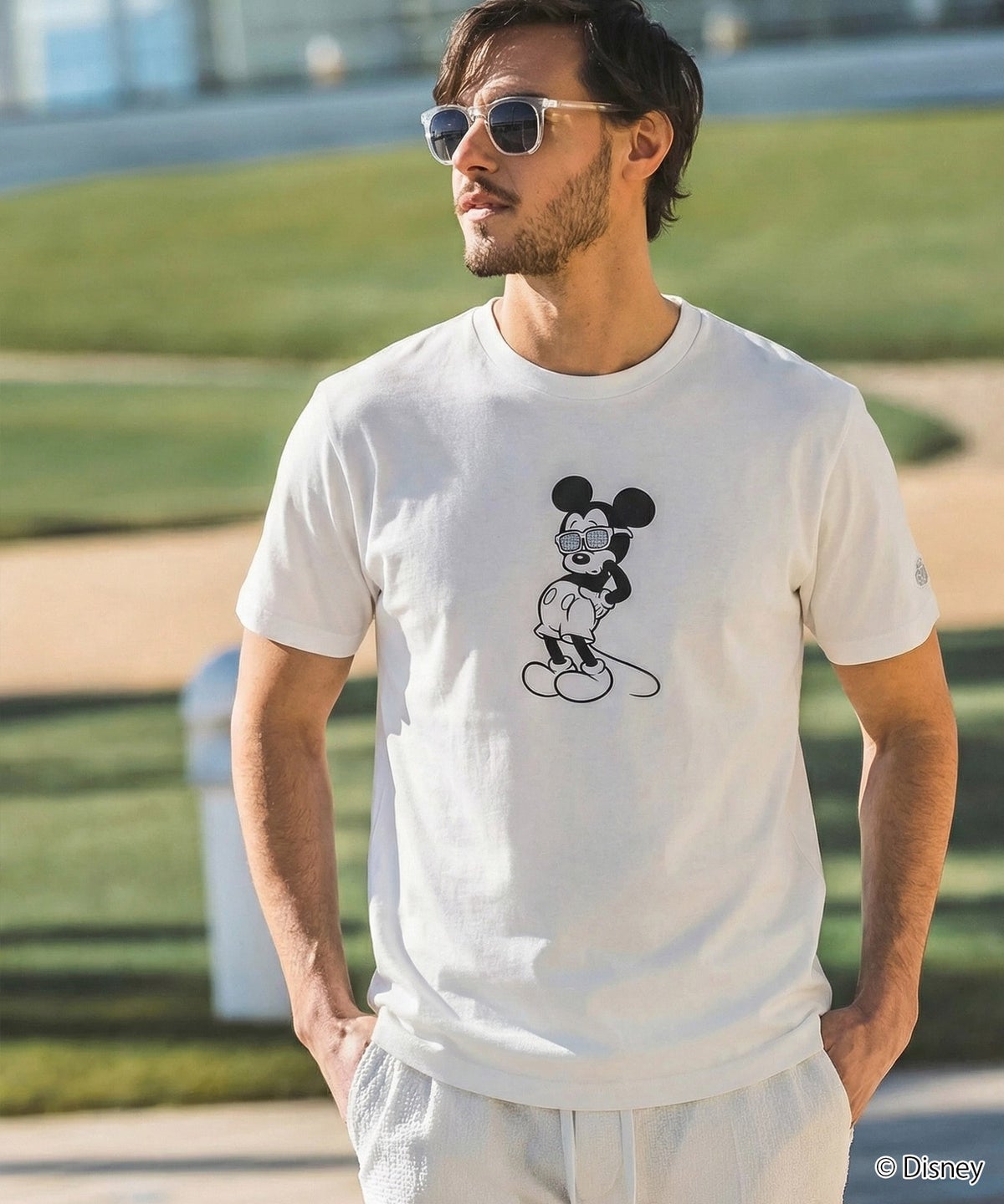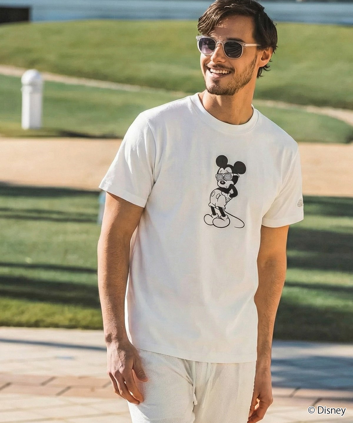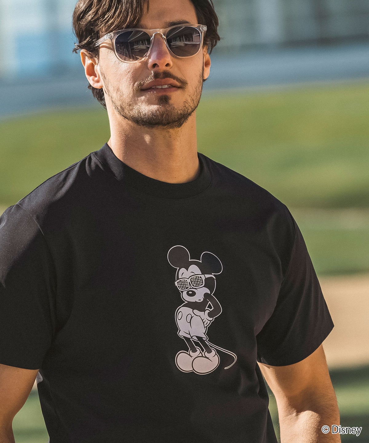LUXEAKMPLUS(リュクスエイケイエムプラス)ゴルフ【ミッキーマウス】ラインストーンサングラス半袖Tシャツ