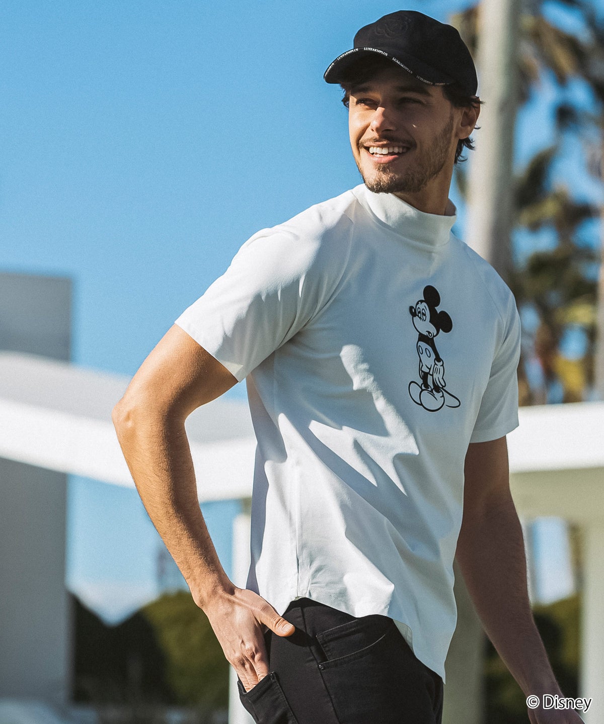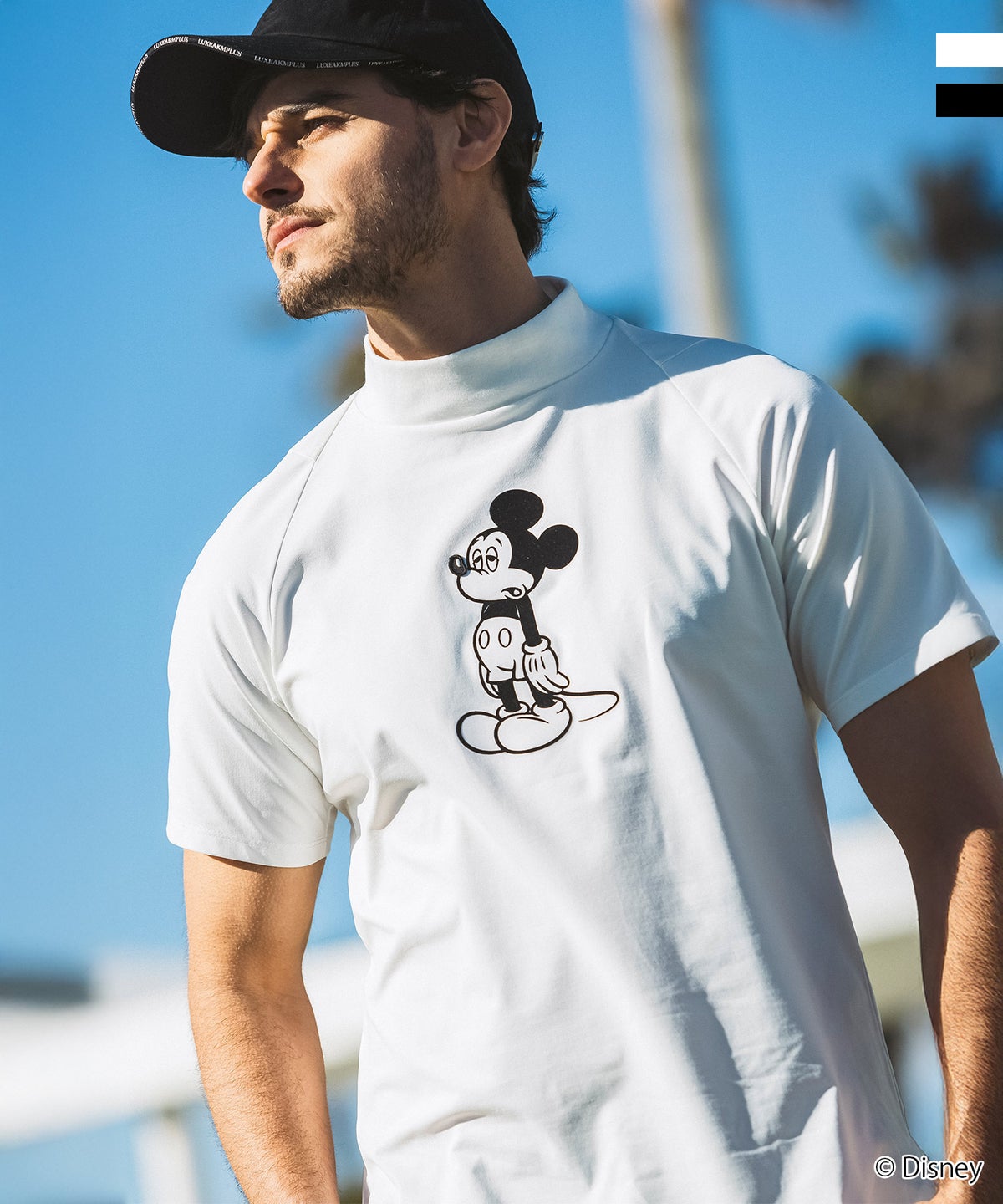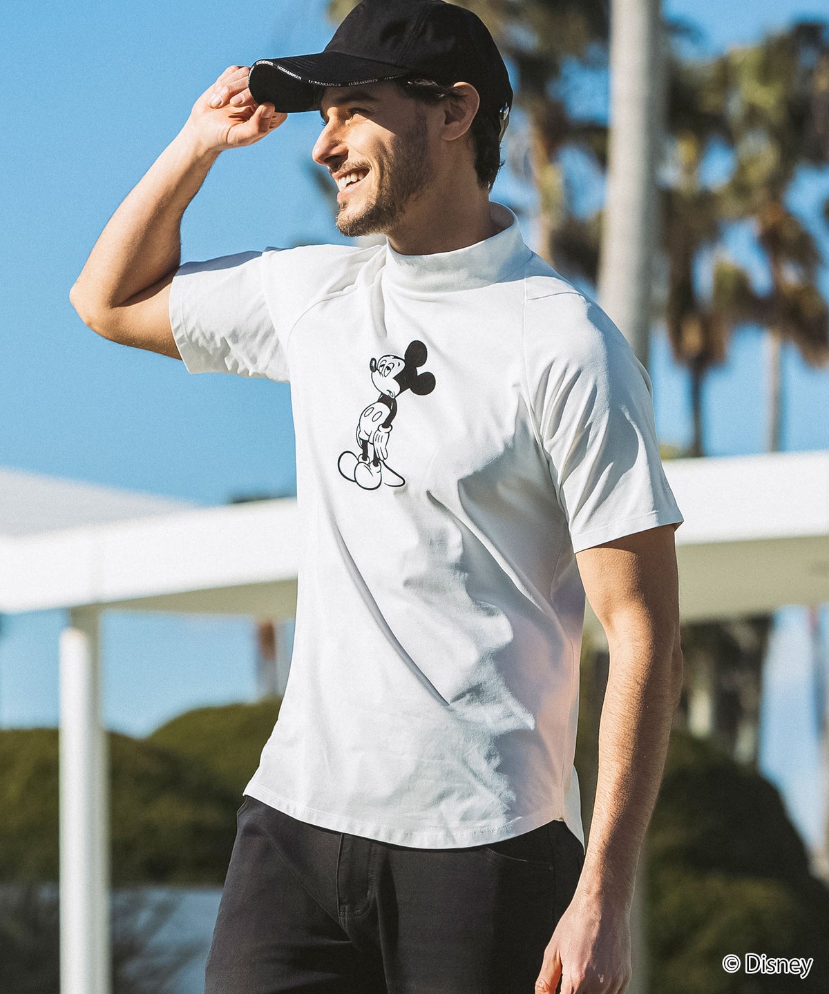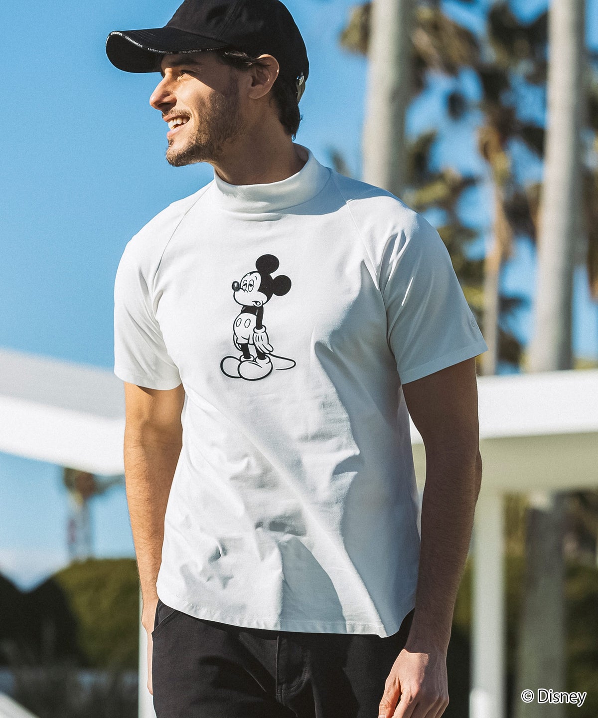 LUXEAKMPLUS(リュクスエイケイエムプラス)ゴルフ【ミッキーマウス】アンニュイフェイスモックネック半袖Tシャツ