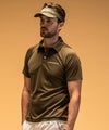 シルキーな微光沢感とハリ感でラグジュアリーな一面を醸し出す半袖ポロシャツ。