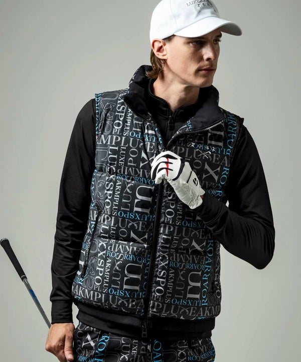 LUXEAKMPLUS×roar(リュクスエイケイエムプラス)ゴルフ 総柄ロゴ中綿ベスト