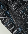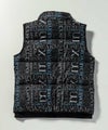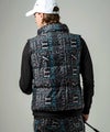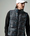 両ブランドのロゴを迷彩のようにミックスさせた総柄の中綿ベスト。
