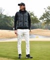 ポケットにはロゴプリントを施した止水ファスナーを配置し、小物の多いゴルフシーンに安心な機能性を確保しています。