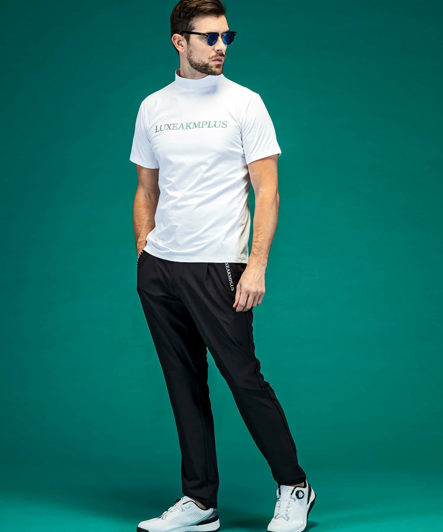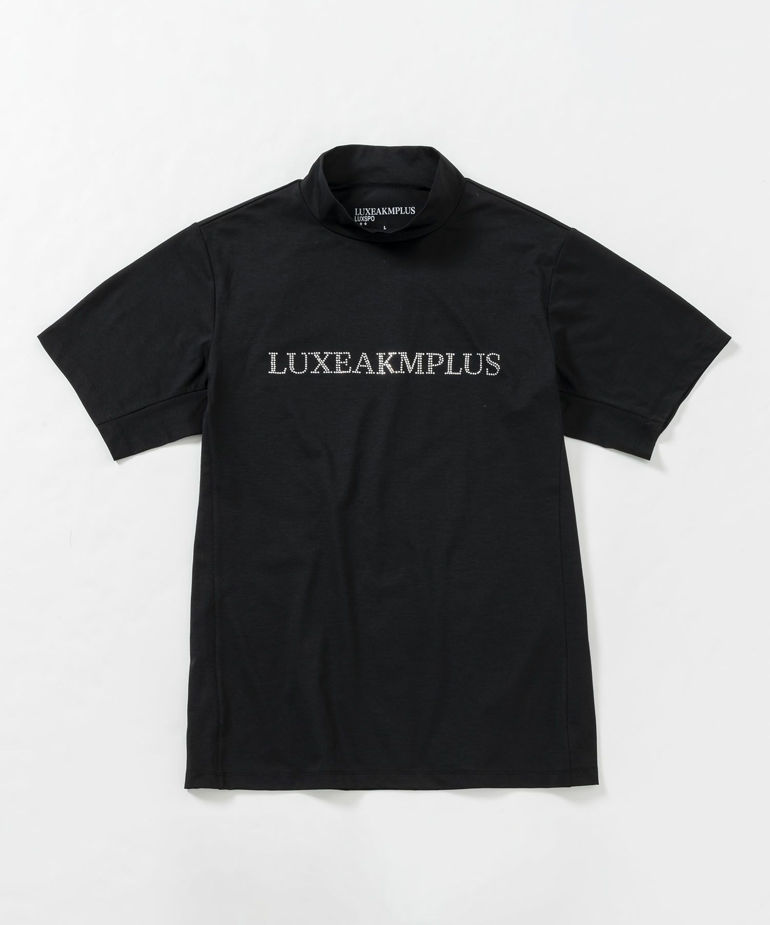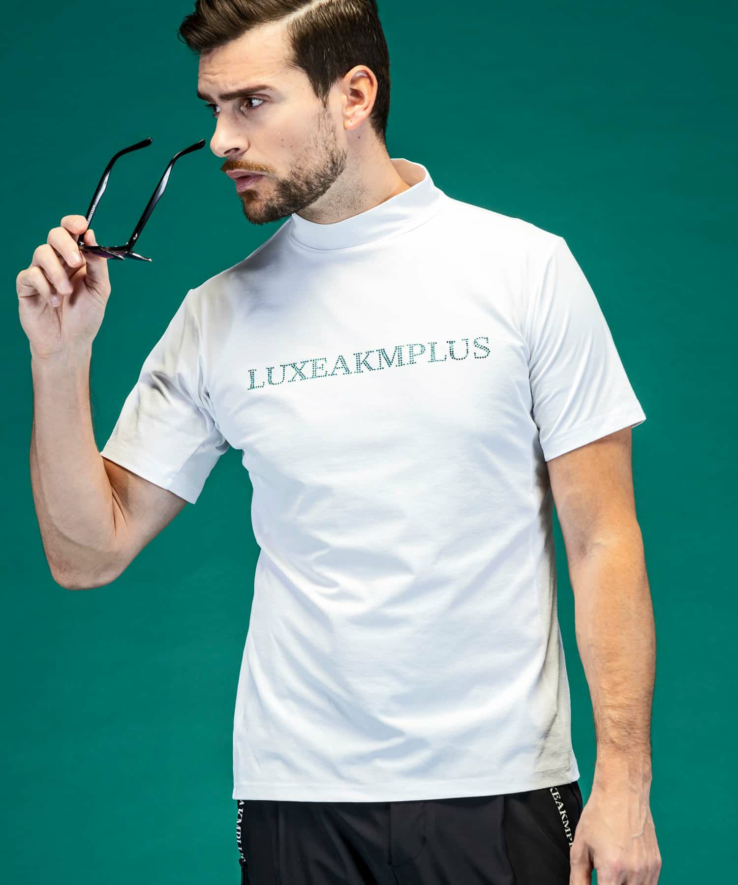 LUXEAKMPLUS(リュクスエイケイエムプラス)ゴルフ ラインストーンロゴ半袖モックネックTシャツ