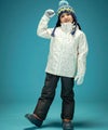 ベーシックなデザインにこだわりの配色や美しい柄を施した子供用スキーウェアの上下セット。