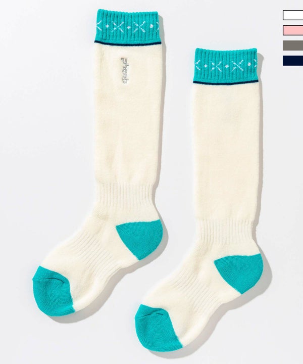 シンプルなデザインの中に、女の子らしい優しいカラーが映えるスキーソックス。