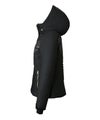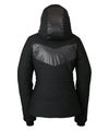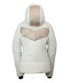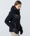 ステッチと胸元の異素材使いが特徴的なデザインが目を引く、レディース用ダウンジャケット。