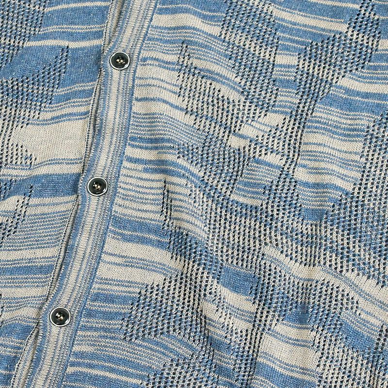 フロント・バックともにファイヤーパターンのような形に透かしデザインが施されたニットカーディガン。
