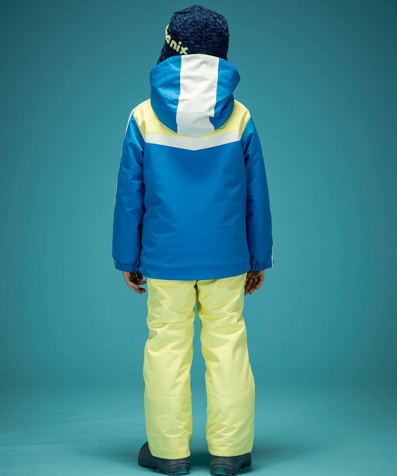 トリコロールカラーのコントラスト切り替えが、雪山で一際目立つスタイリッシュなデザインとなっており、元気いっぱいの子供たちにぴったりの遊び心を感じさせます。