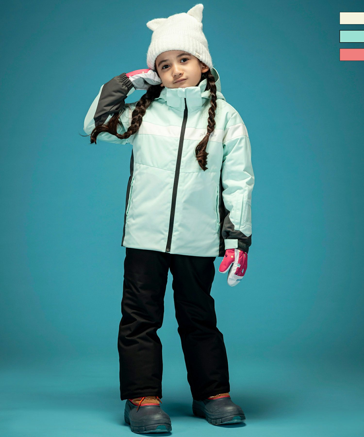 さらに、2wayストレッチ素材を採用しており、動きやすさも抜群。アクティブなお子様のスキーや雪遊びを、快適で自由にサポートします。